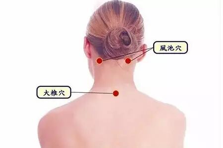 ①肩颈部的“大椎穴”,